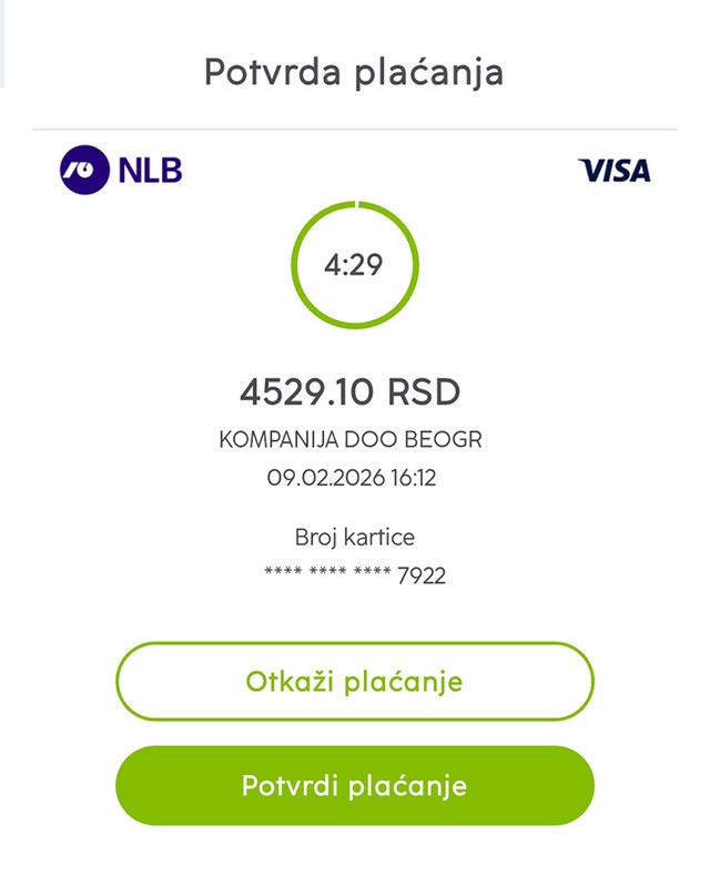 3. Ukoliko je potrebna dodatna verifikacija, prikazaće se ekran za potvrdu plaćanja.